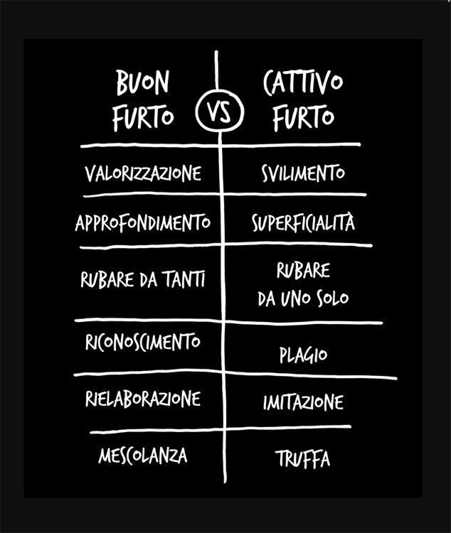 Da "Steal Like An Artist" (un libro di Austin Kleon) trovate alcune regole su cosa sia un buono o cattivo furto.